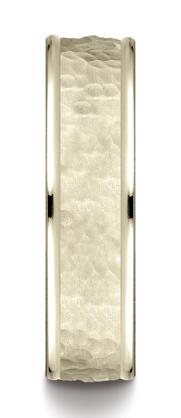 แหวนดีไซน์กลางแบบทุบ ขอบขัดเงาสูง 6 มม. ใส่สบาย ทองคำเหลือง 18k