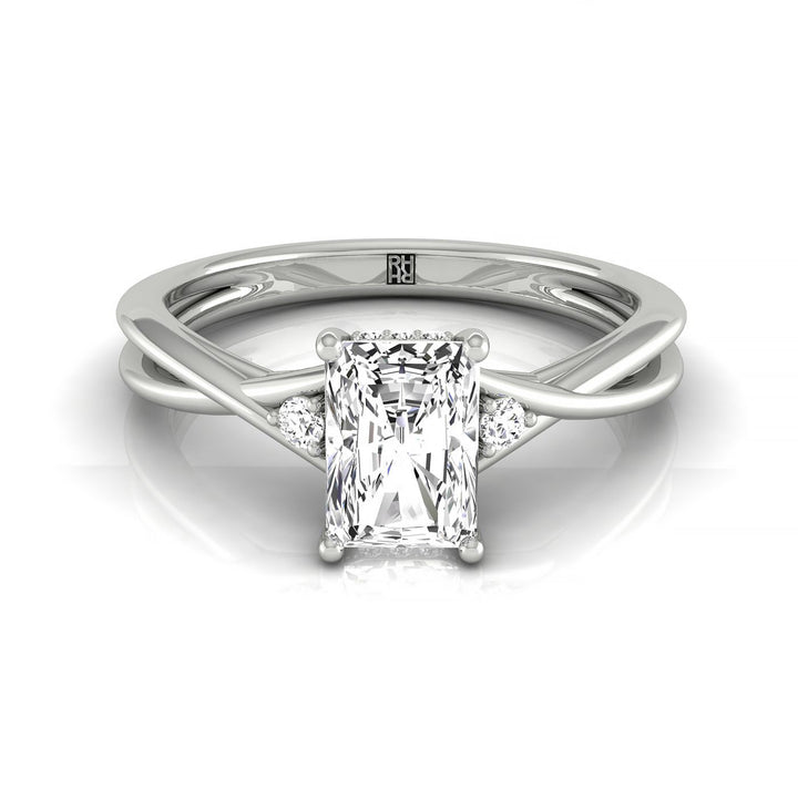 แหวนหมั้นฮาโลแบบซ่อนเดี่ยวหัวบิดเรเดียนท์ 18kw พร้อมเพชรรอบแบบตั้งกรงเล็บ 18 กรง เลขขนาด 7.5
