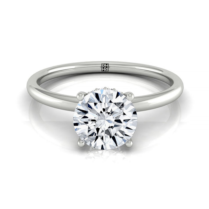 แหวนหมั้นโซลิแทร์ทรงกลม 18kw พร้อมฮาโลซ่อนด้านบนและเพชรทรงกลม 16 เม็ดแบบตั้งด้วยกรง