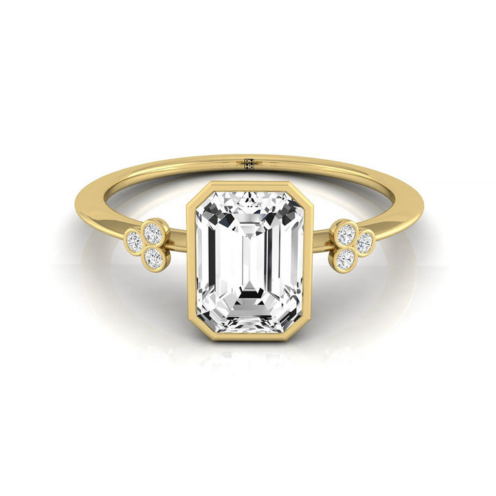แหวนหมั้นมรกตแบบขอบ 18ky พร้อมเพชรรูปใบโคลเวอร์ 6 เม็ดแบบขอบกลมบนก้านแหวน