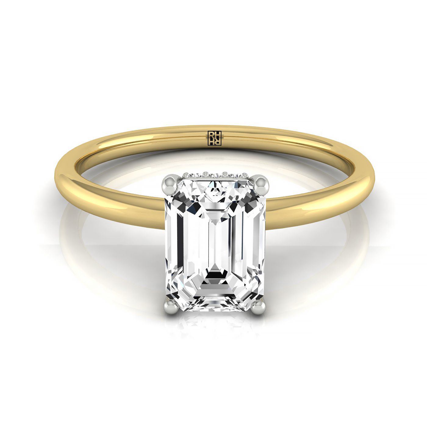 แหวนหมั้นมรกตเดี่ยว 18 กะรัต พร้อมฮาโลซ่อนด้านบนและเพชรรอบทรงกลม 16 กรง