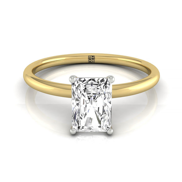 แหวนหมั้นเดี่ยวเปล่งประกาย 18ky พร้อมฮาโลลับและเพชรรูปกลมติดตั้งด้วยกรงเล็บ 4 กรง