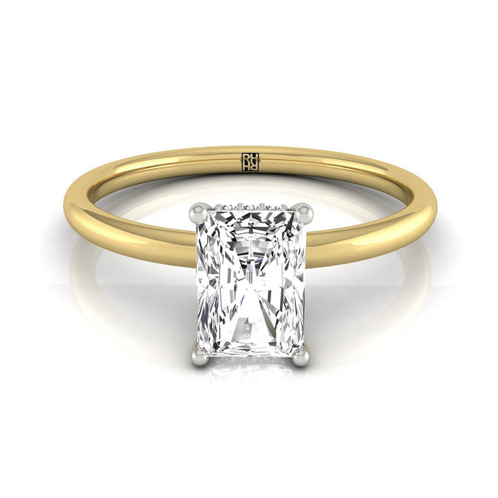 แหวนหมั้นเดี่ยวประกายระยิบระยับ 18ky พร้อมฮาโลซ่อนด้านบนและเพชรรูปกลม 16 เม็ดแบบตั้งด้วยกรงเล็บ