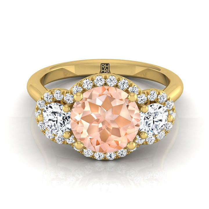แหวนหมั้นสามก้อนเพชรฝรั่งเศสประดับมอร์แกไนต์ทรงกลมเจียระไนแบบ Brilliant สีทองเหลือง 14K - 1/2ctw
