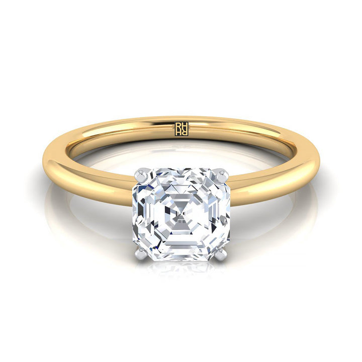 แหวนหมั้นเดี่ยวแบบหนามเตย ตัดทรงแอสเชอร์ สีทองคำ 18K สีเหลือง แบบสวมใส่สบายทรงกลม