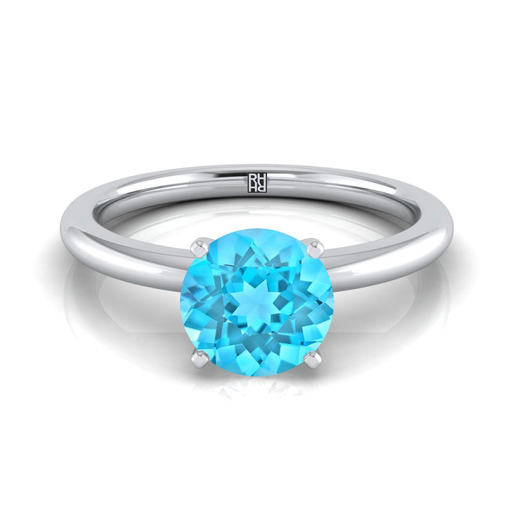 แหวนหมั้นเดี่ยวแบบหนามเตยทรงกลมแบบสบายมือประดับทับทิมสวิสสีน้ำเงินทรงกลมเจียระไนแบบ Brilliant จากทองคำขาว 18K