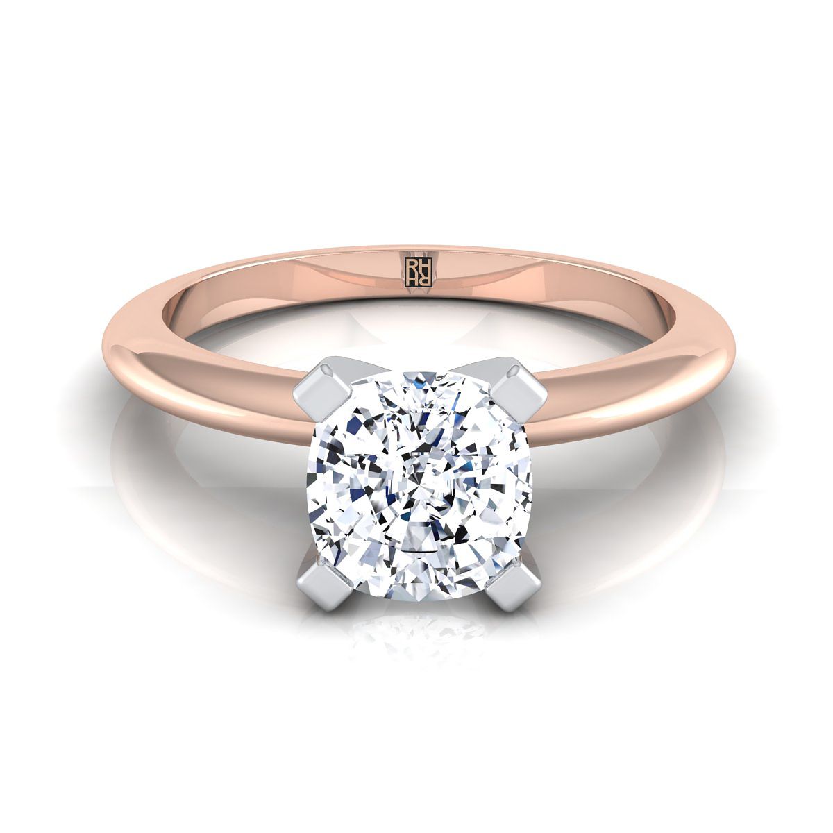 แหวนหมั้นแบบเดี่ยวทองคำชมพู 14K แบบเบสต่ำรูปหมอนคลาสสิก