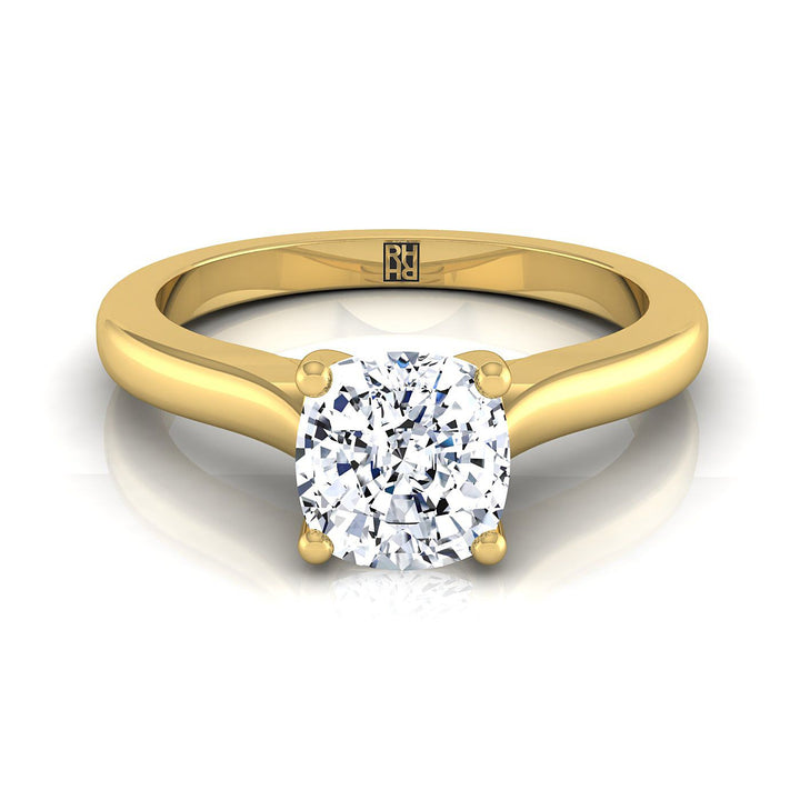 แหวนหมั้นเพชรเดี่ยวทรงโบสถ์ ดีไซน์สวมใส่สบายรูปทรงหมอน ทองคำเหลือง 14K