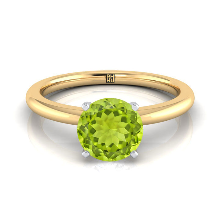 แหวนหมั้นเดี่ยวแบบหนามหนีบทรงกลมประดับเพอริดอตทรงกลมเจียระไนแบบบริลเลียนต์สีเหลืองทอง 14K แบบสวมใส่สบาย