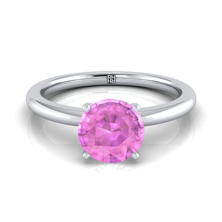 แหวนหมั้นเดี่ยวแบบหนามก้ามปูทรงกลมสวมใส่สบาย พลอยไพลินสีชมพูทรงกลมเจียระไนแบบบริลเลียนท์แพลทินัม