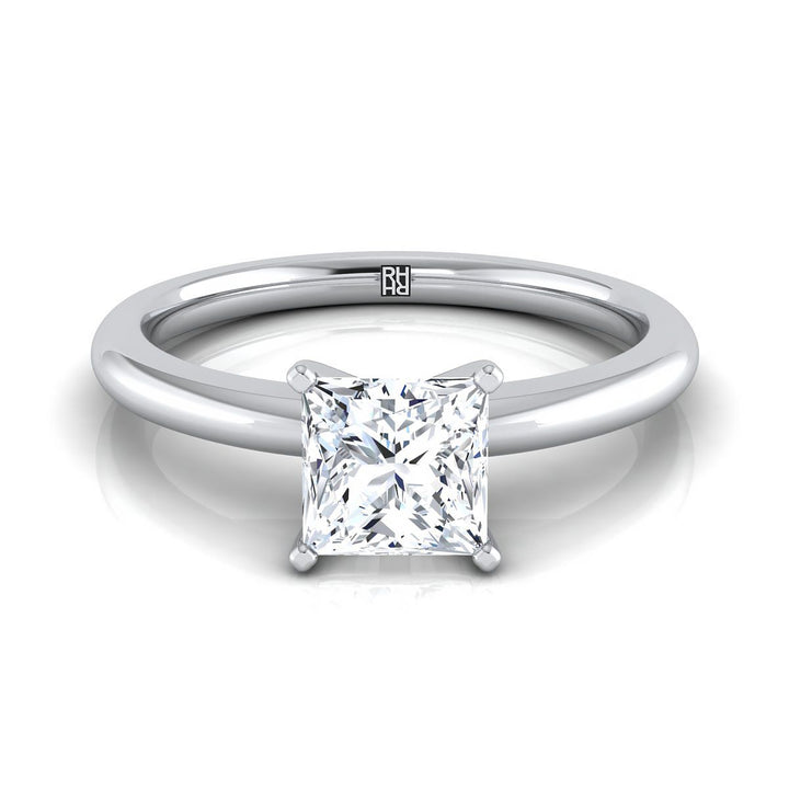 แหวนหมั้นแบบโซลิแทร์เพชรทรงเจ้าหญิงแพลทินัม ตัดแบบกลม ขอบสบาย แบบกรงหนีบ
