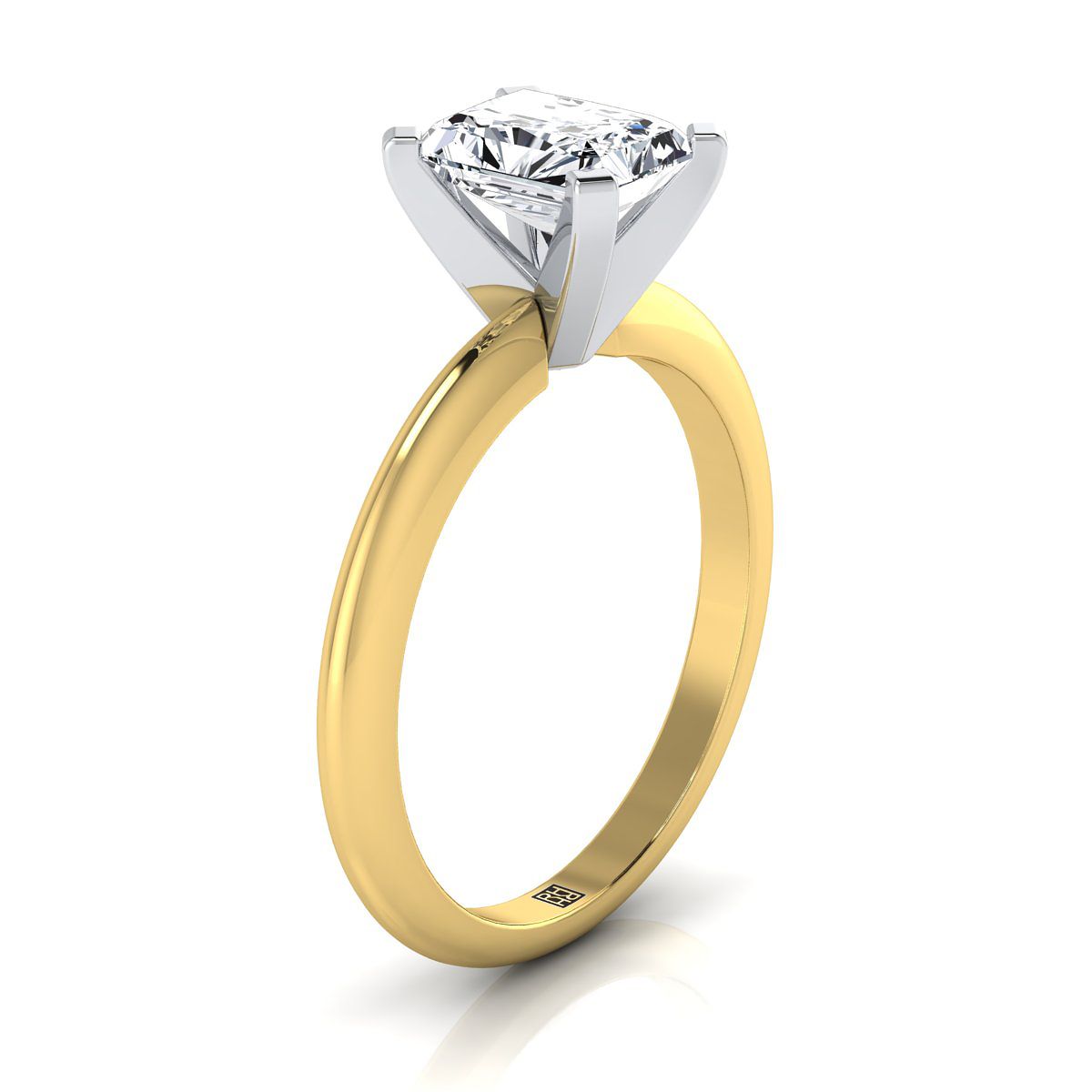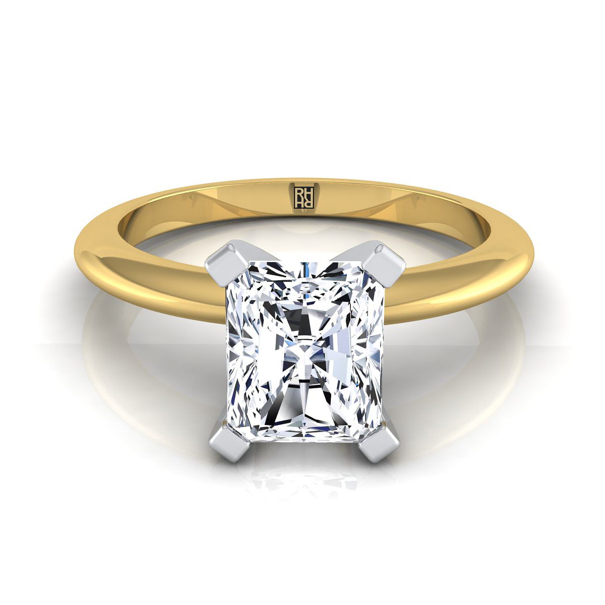 แหวนหมั้นแบบโซลิแทร์ฐานต่ำคลาสสิก ประกอบด้วยทองคำเหลือง 14K เจียระไนแบบเรเดียนต์ตรงกลาง