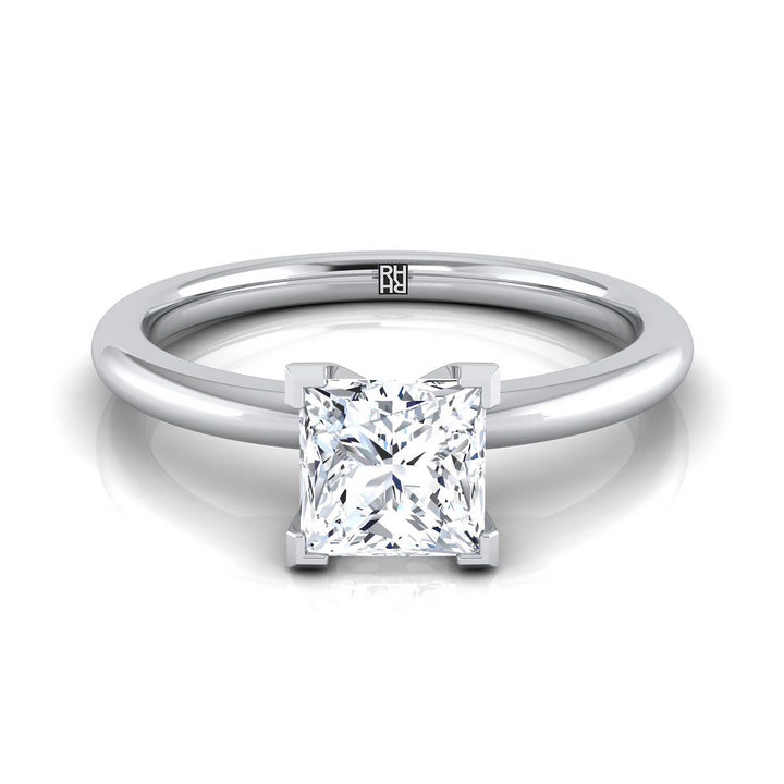 แหวนหมั้นแบบโซลิแทร์เพชรทรงเจ้าหญิงแพลทินัม ตัดแบบกลม ขอบสบาย แบบกรงหนีบ