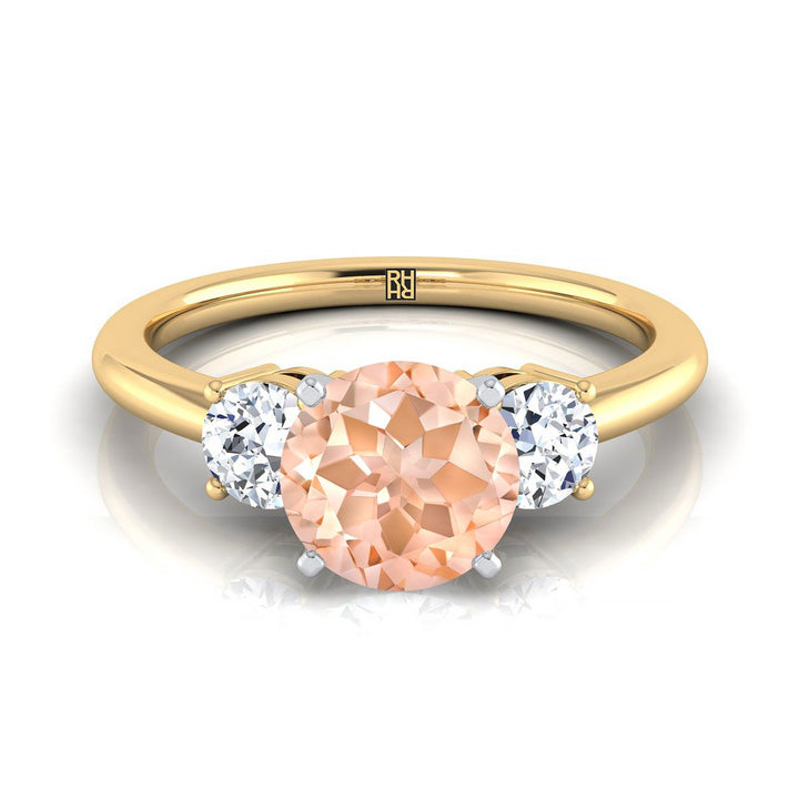 แหวนหมั้นเพชรสามเม็ดทรงกลมที่เข้าคู่กันอย่างสมบูรณ์แบบ มอร์แกไนต์ทรงกลมเจียระไนแบบ Brilliant สีทองเหลือง 14K - 1/4ctw