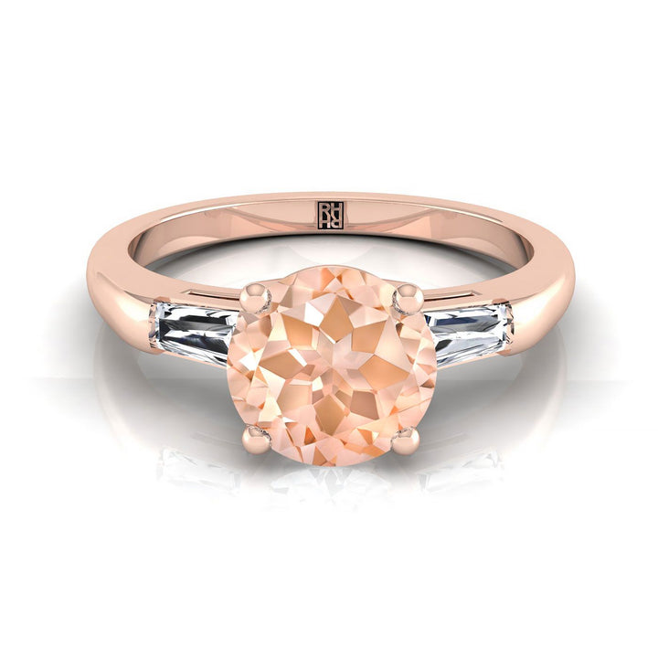 แหวนหมั้นโมแกไนต์สามเม็ดทรงกลมเจียระไนแบบบริลเลียนต์ ทองกุหลาบ 14K พร้อมบาแกตต์เรียว - 1/5ctw