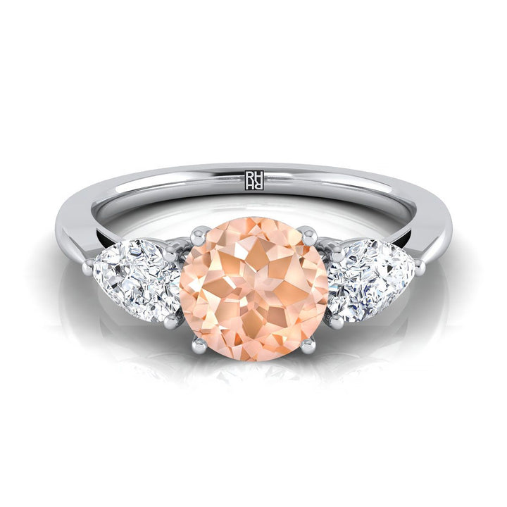 แหวนหมั้นเพชรสามเม็ดรูปทรงลูกแพร์ที่เข้าคู่กันอย่างสมบูรณ์แบบ มอร์แกไนต์ทรงกลมเจียระไนแบบ Brilliant สีทองขาว 18K - 7/8 กะรัตรวม