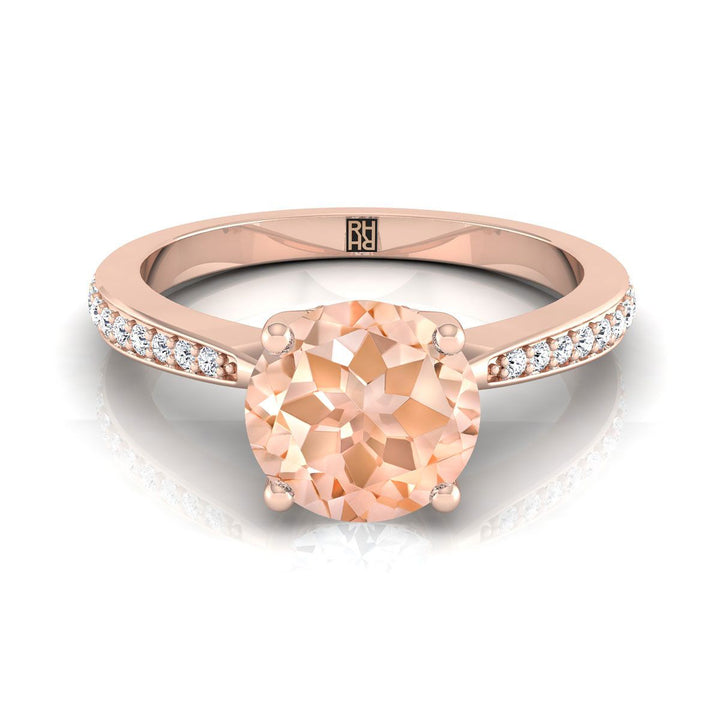 แหวนหมั้นเพชรแบบปาเว่ทรงกลมเจียระไนแบบบริลเลียนท์สีโรสโกลด์ 14K มอร์กาไนต์ทรงเรียว - 1/8ctw