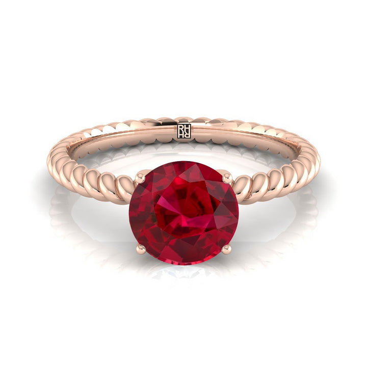 แหวนหมั้นทองคำชมพู 14k พร้อมเพชรทับทิมกลมขนาด 5 มม. ที่ศูนย์กลาง และดีไซน์เชือกที่ก้านแหวน