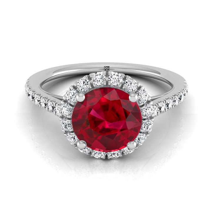 แหวนหมั้นเพชรฝรั่งเศสแบบปาเว่รูปวงกลมเพชรแท้รูบี้เพทายแพลทินัม - 3/8ctw