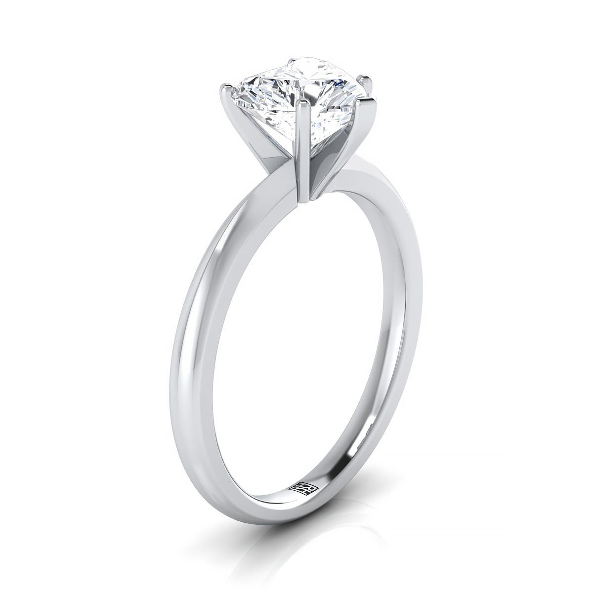 แหวนหมั้นรูปหัวใจแบบโซลิแทร์ที่มีสไตล์คลาสสิกนี้ โชว์ขอบแหลมสมัยใหม่และการตั้งศูนย์แบบ 5 ก้านในทองคำขาว 14 กะรัต