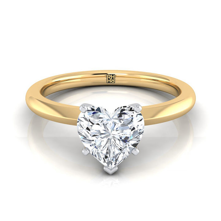 แหวนหมั้นรูปหัวใจแบบโซลิแทร์ที่เป็นสัญลักษณ์ของสไตล์คลาสสิกนี้ โชว์ขอบแหลมสมัยใหม่และการตั้งศูนย์แบบ 5 ก้านในทองคำเหลือง 14 กะรัต