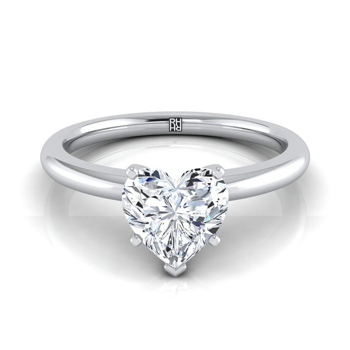 แหวนหมั้นรูปหัวใจแบบโซลิแทร์สุดคลาสสิกนี้แสดงให้เห็นถึงดีไซน์ที่มีแถบวงกลมและการตั้งศูนย์แบบ 5 ก้านในแพลตตินัม