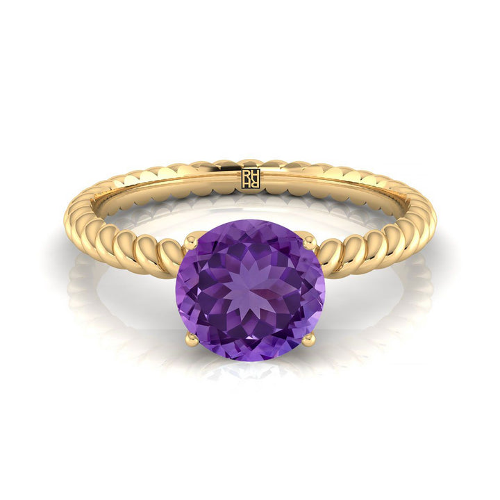 แหวนหมั้นทองคำ 18 กะรัต สีเหลือง พร้อมอเมทิสต์ทรงกลมขนาด 6 มม. ที่ศูนย์กลาง และดีไซน์เชือกที่วงแหวน