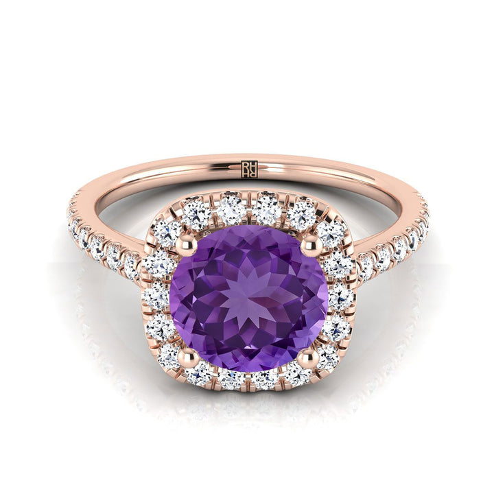 แหวนหมั้นประดับเพชรแบบพาเว่ทรงกลมล้อมด้วยอเมทิสต์ทรงกลมเจียระไนแบบบริลเลียนต์สีโรสโกลด์ 14K - 1/3ctw
