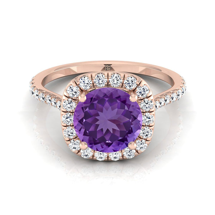 แหวนหมั้นทองคำชมพู 14K ประดับอเมทิสต์ทรงกลมเจียระไนแบบ Brilliant พร้อมเพชรล้อมแบบ Shared Prong น้ำหนักรวม 3/8 กะรัต