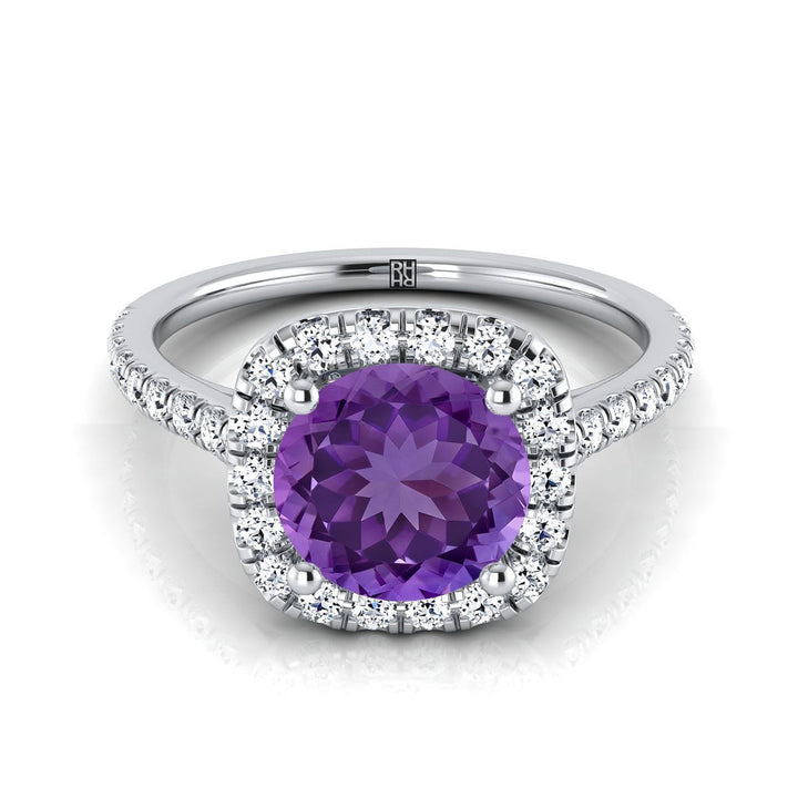 แหวนหมั้นประดับเพชรแบบวงกลมเจียระไนแบบ Brilliant สีอเมทิสต์แบบ Halo ประดับเพชร Pave น้ำหนักรวม 1/3 กะรัต