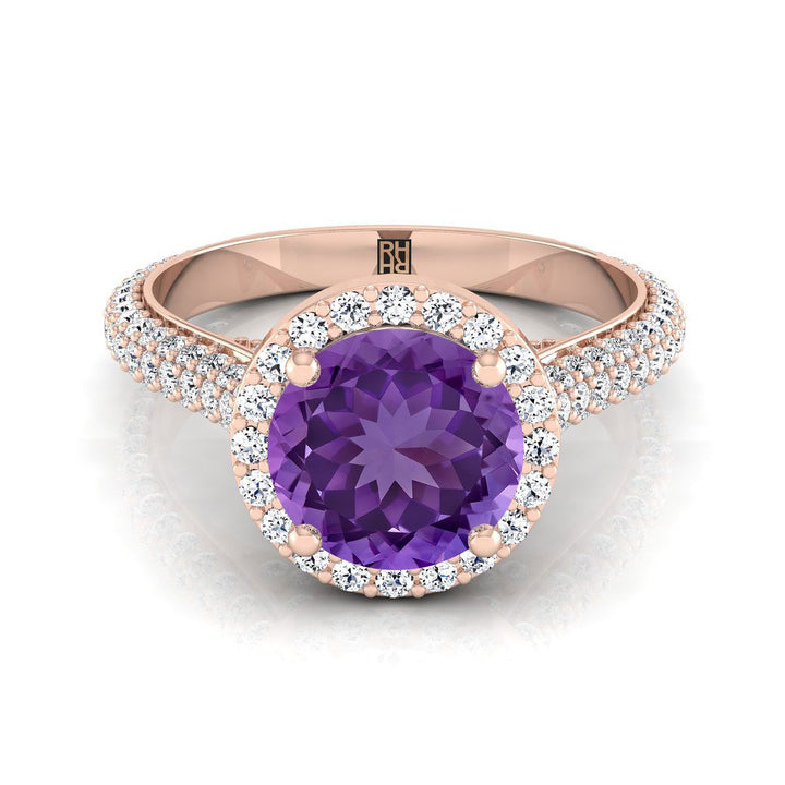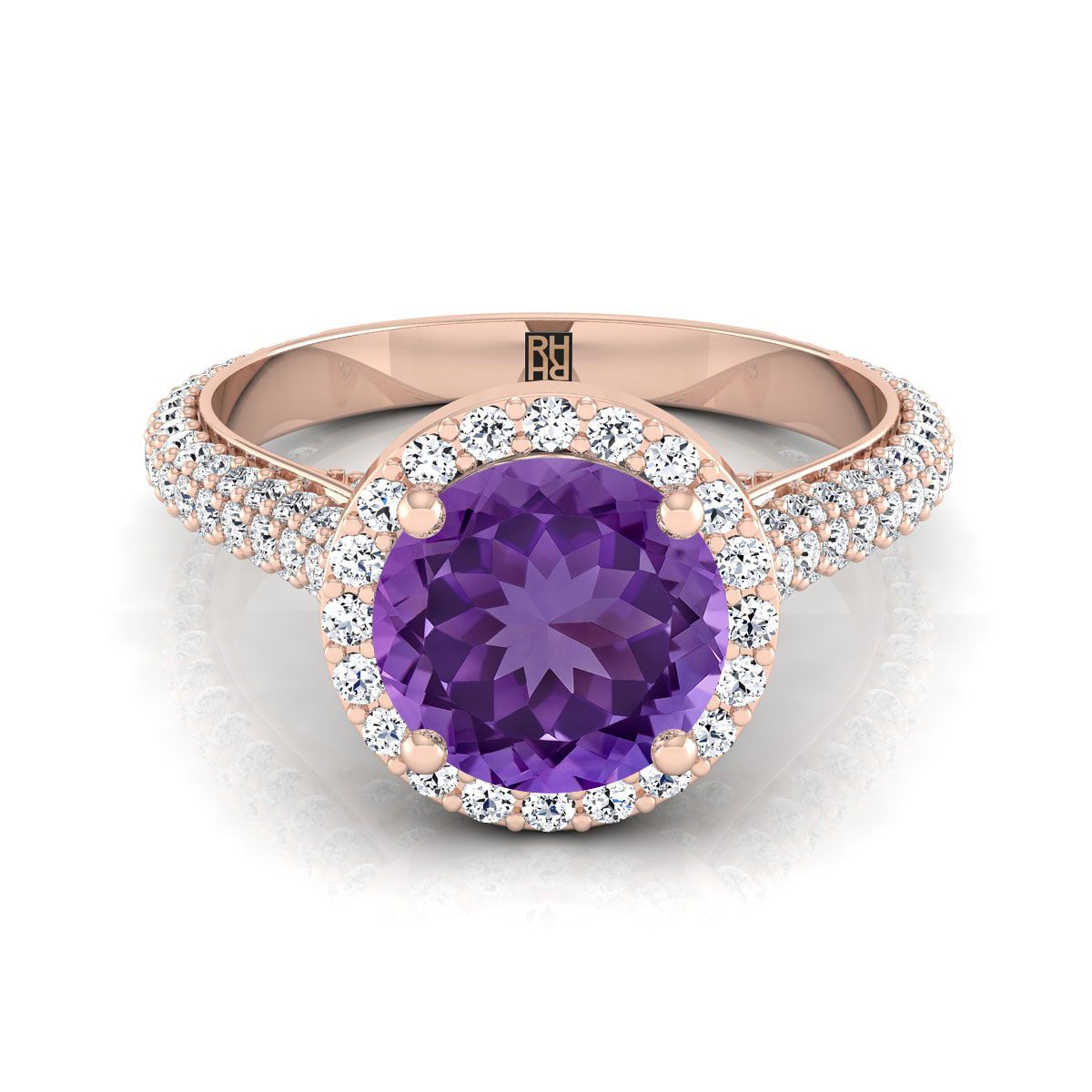 แหวนหมั้นเพชรข้างแบบไมโครปาเว่ทรงกลมเจียระไนแบบบริลเลียนต์สีม่วงอเมทิสต์ 14K ทองกุหลาบ
