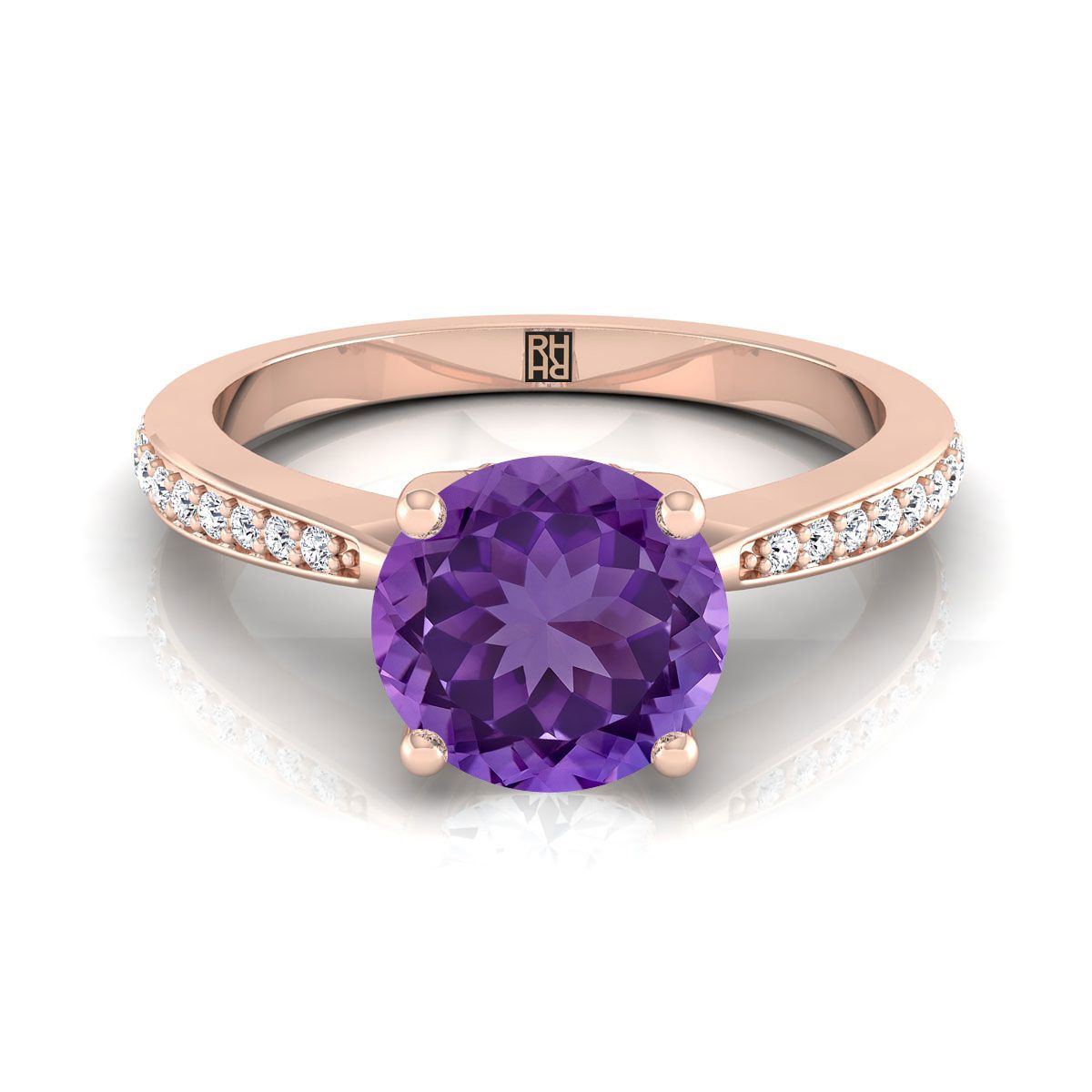 แหวนหมั้นเพชรแบบปาเว่ทรงกลมเจียระไนแบบบริลเลียนต์สีม่วงอเมทิสต์ทรงเรียวทองกุหลาบ 14K - 1/8ctw
