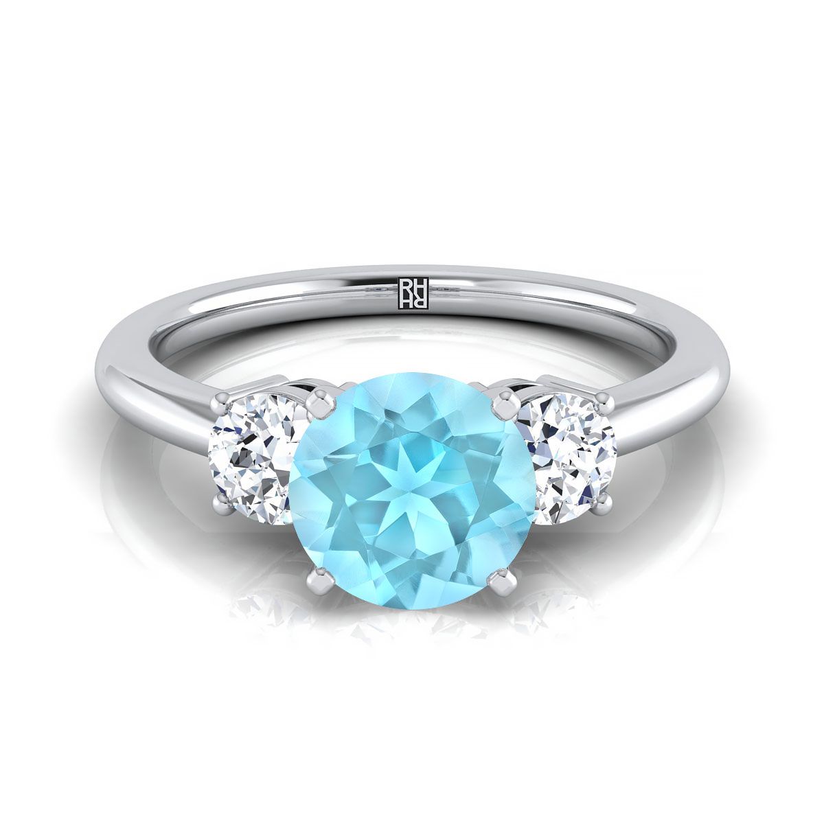 แหวนหมั้นเพชรสามเม็ดทรงกลมที่เข้าคู่กันอย่างสมบูรณ์แบบ ประกอบด้วยอความารีนทรงกลมเจียระไนแบบ Brilliant สีขาวทอง 14K - 1/4ctw