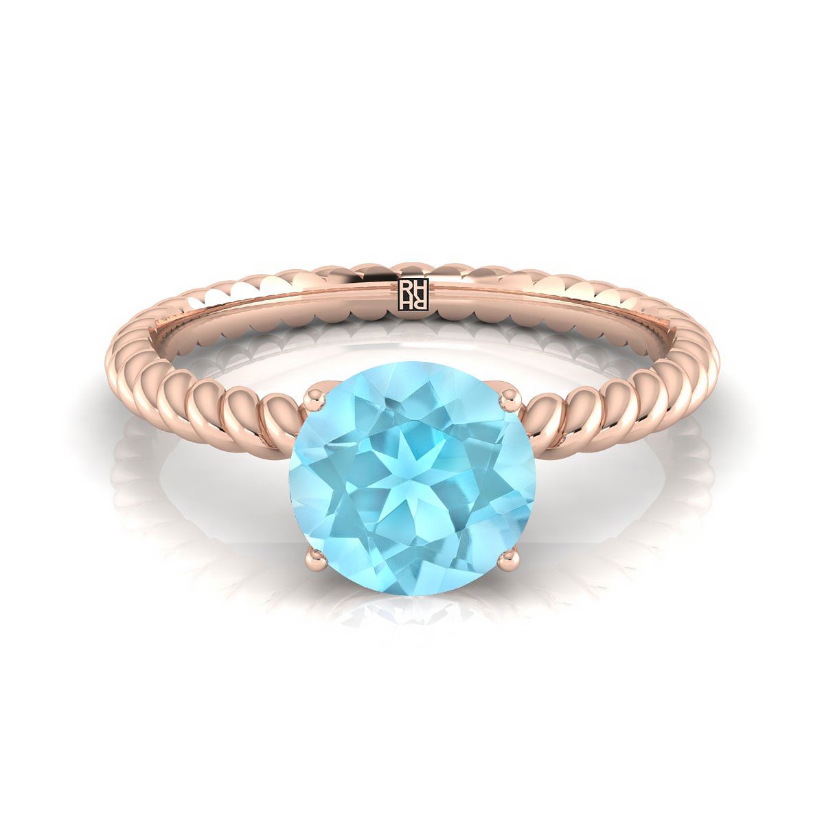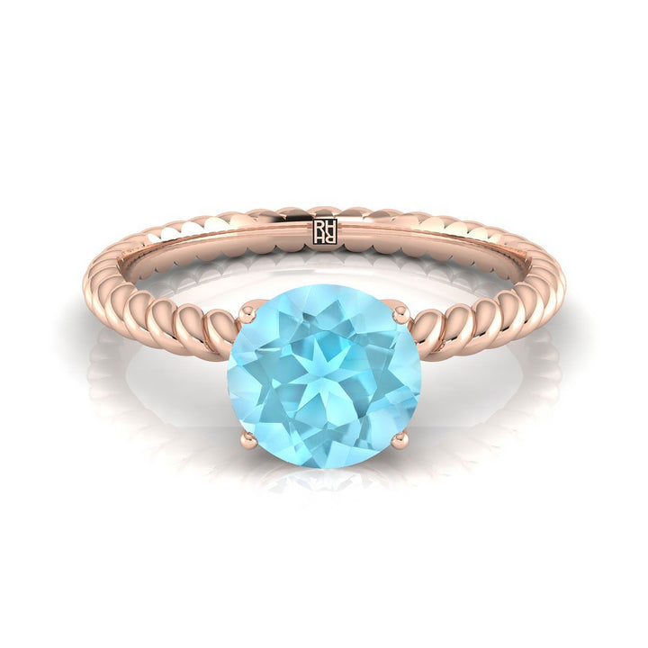 แหวนหมั้นทองคำชมพู 14k พร้อมเพชรอะความารีนทรงกลมขนาด 6 มม. ที่ศูนย์กลาง และดีไซน์เชือกที่วงแหวน