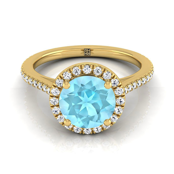 แหวนหมั้นทองคำเหลือง 18K ทรงกลมเจียระไนแบบคลาสสิก ฝรั่งเศสแบบปาเว่และฮาโลว์เชิงเส้น - 1/4ctw