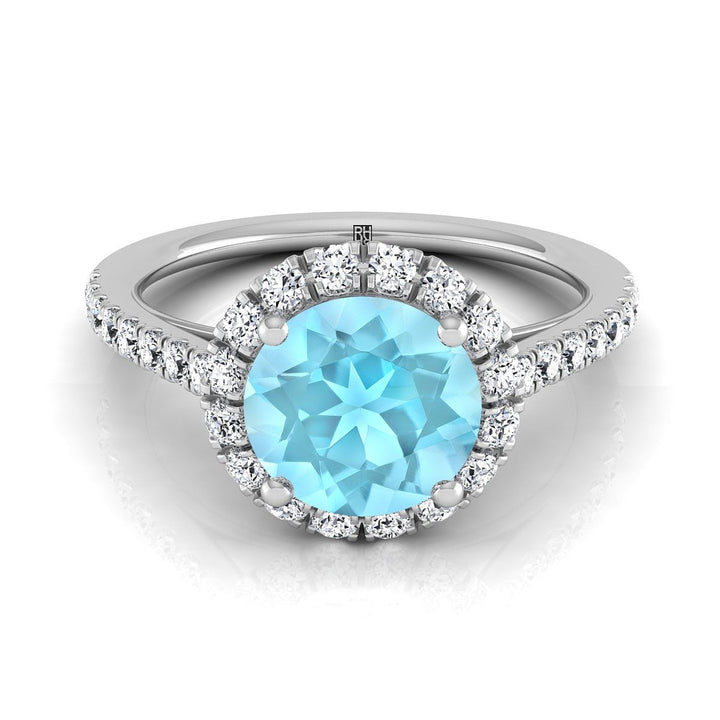 แหวนหมั้นเพชรฝรั่งเศสแบบปาเว่รูปวงกลมเพชรน้ำเงินอะความารีนขนาดเล็กแพลทินัม - 3/8ctw