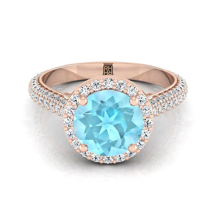 แหวนหมั้นเพชรข้างแบบไมโครปาเว่ทรงกลมเจียระไนแบบบริลเลียนต์สีโรสโกลด์ 14K ประดับอะความารีน 7/8ctw