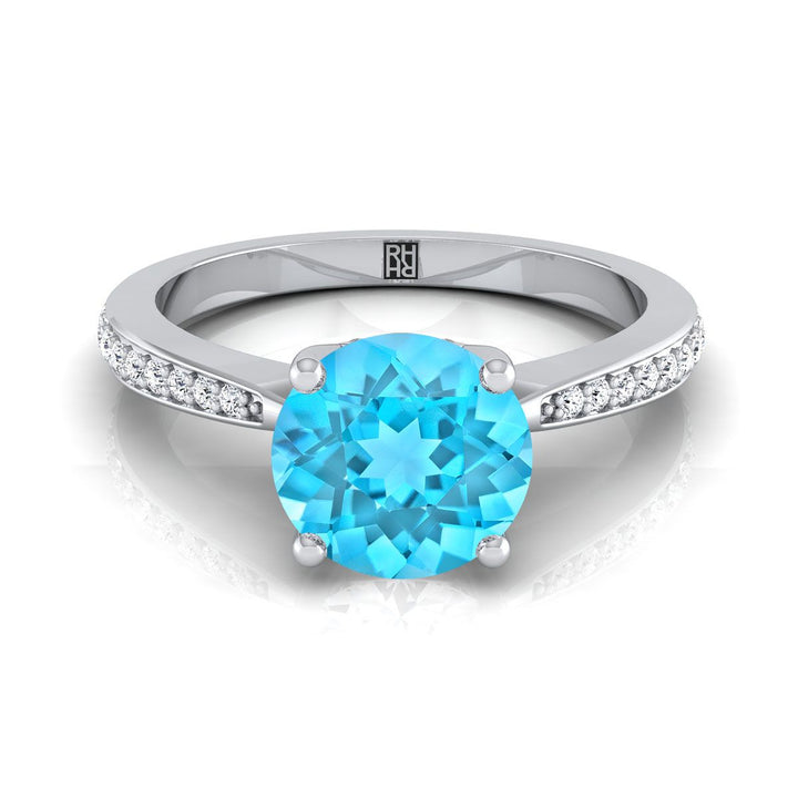 แหวนหมั้นเพชรแบบปาเว่ทรงกลมเจียระไนแบบบริลเลียนท์สีฟ้าสวิสท็อปาซทองคำขาว 14K - 1/8ctw