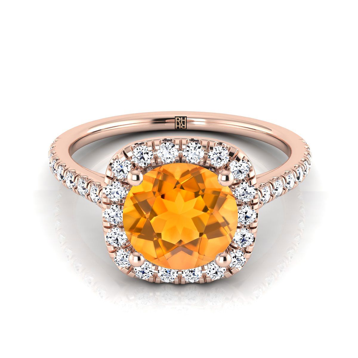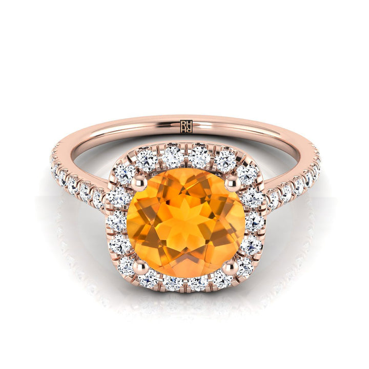 แหวนหมั้นประดับเพชรแบบพาเว่ทรงกลมล้อมด้วยซิทรินทรงกลมเจียระไนแบบบริลเลียนต์สีโรสโกลด์ 14K - 1/3 กะรัตรวม