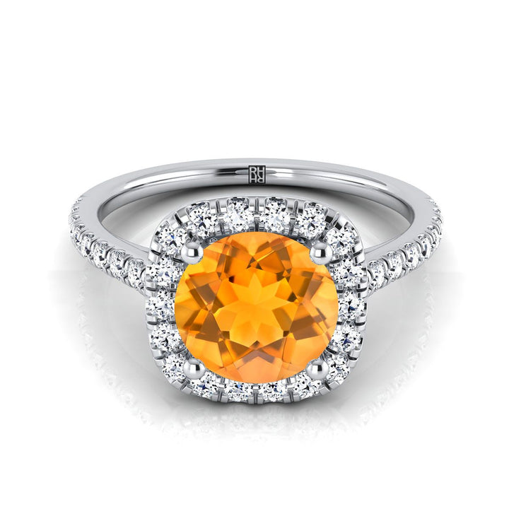 แหวนหมั้นประดับเพชรแบบพาเว่ทรงกลมเจียระไนแบบบริลเลียนต์สีซิทริน ฮาโลว์ทองคำขาว 14K - 1/3 กะรัตรวม