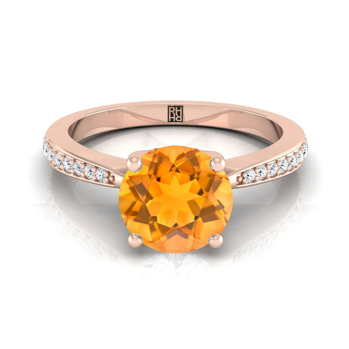 แหวนหมั้นเพชรแบบปาเว่ทรงกลมเจียระไนแบบบริลเลียนท์สีซิทรินทองกุหลาบ 14K น้ำหนักรวมเพชร 1/8 กะรัต