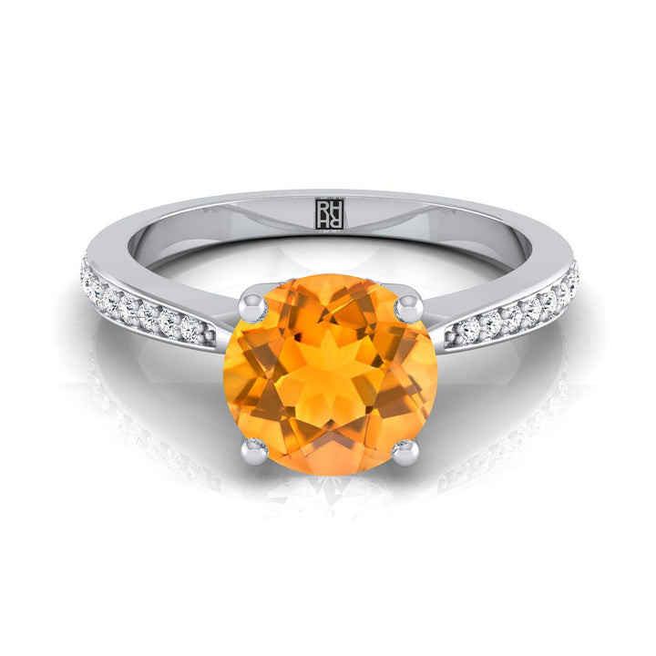 แหวนหมั้นเพชรแบบปาเว่ทรงกลมเจียระไนแบบบริลเลียนต์สีซิทรินสีขาว 14K ทองคำขาวทรงเรียว - 1/8ctw