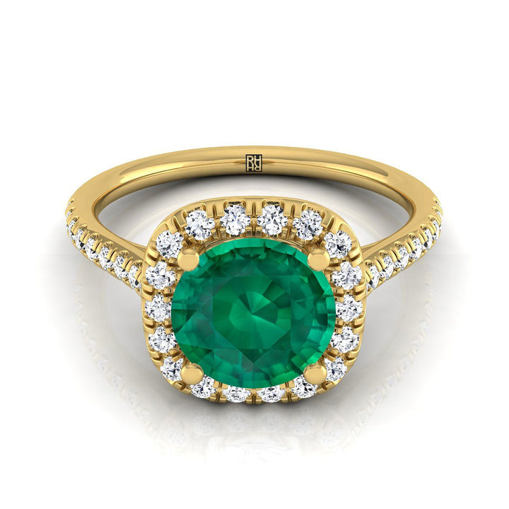 แหวนหมั้นประดับมรกตทรงกลมเจียระไนแบบประกายแวววาวแบบง่าย 18K ทองเหลืองพร้อมกรอบเม็ดเพชรแบบโค้ง - 1/3ctw