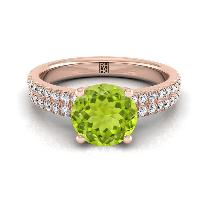 แหวนหมั้นเพชรแถวคู่ประดับเพอริดอตทรงกลมเจียระไนแบบบริลเลียนต์สีโรสโกลด์ 14K - 1/4ctw