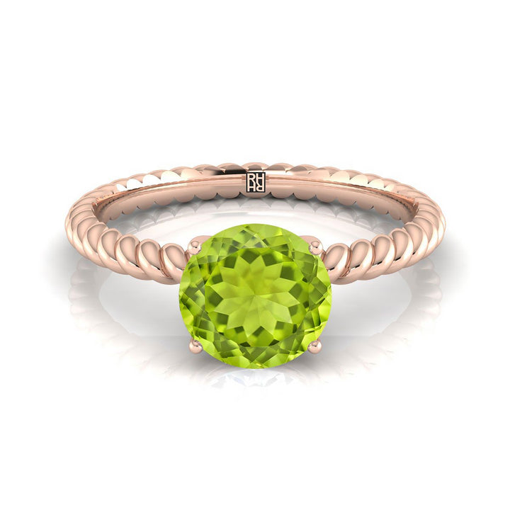 แหวนหมั้นทองคำชมพู 14k พร้อมเพชรประดับเพอริดอตทรงกลมขนาด 6 มม. ที่กลาง และดีไซน์เชือกที่วงแหวน