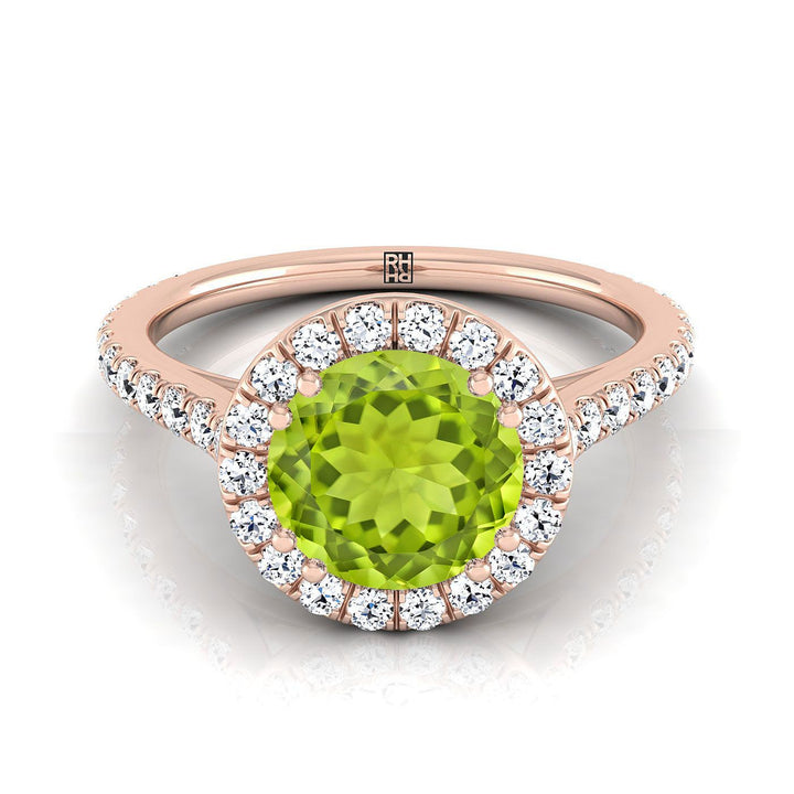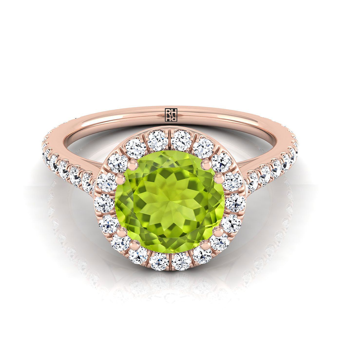 แหวนหมั้นเพชรฮาโลว์ทรงกลมแบบแฟนซีแนวนอนสีเขียวมรกต 14K โรสโกลด์ - 1/2ctw