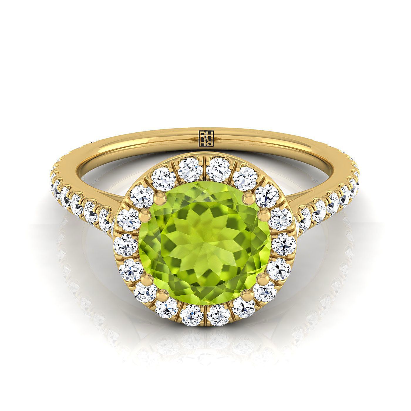 แหวนหมั้นเพชรฮาโลแบบแฟนซีแนวนอนทรงกลมเจียระไนแบบ Brilliant ประดับเพอริดอตทองคำเหลือง 18K - 1/2ctw