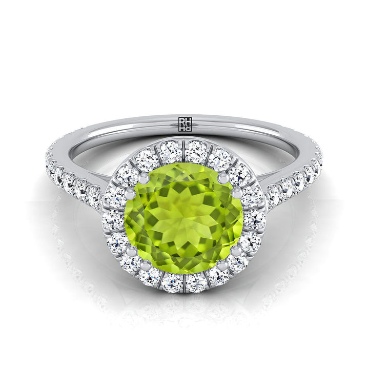 แหวนหมั้นเพชรฮาโลแบบแฟนซีแนวนอนตะวันออก-ตะวันตกเพชรเพอริดอตทรงกลมเจียระไนแบบบริลเลียนท์แพลทินัม - 1/2ctw