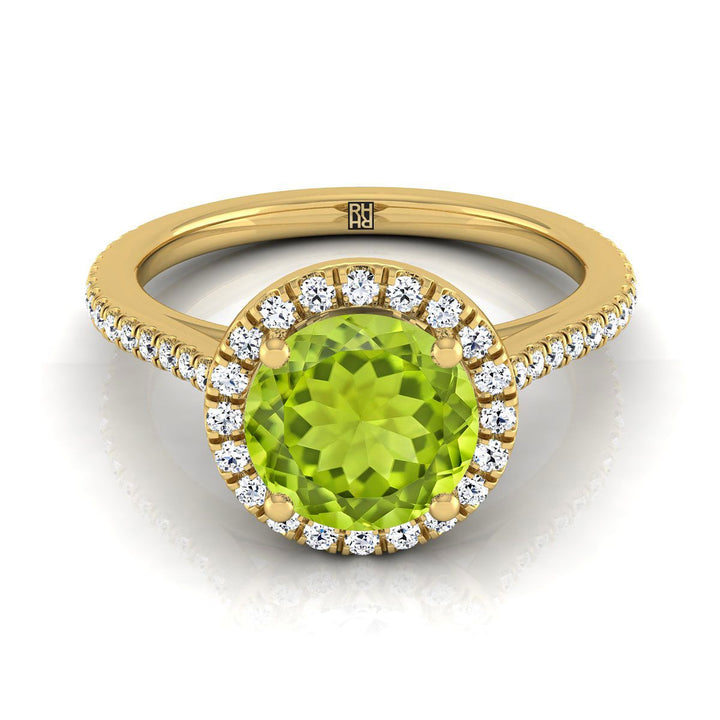 แหวนหมั้นทองคำเหลือง 14K ทรงกลมเจียระไนแบบคลาสสิก ฝรั่งเศสประดับเพชรแบบฮาโลและเส้นตรง - 1/4ctw