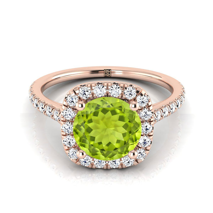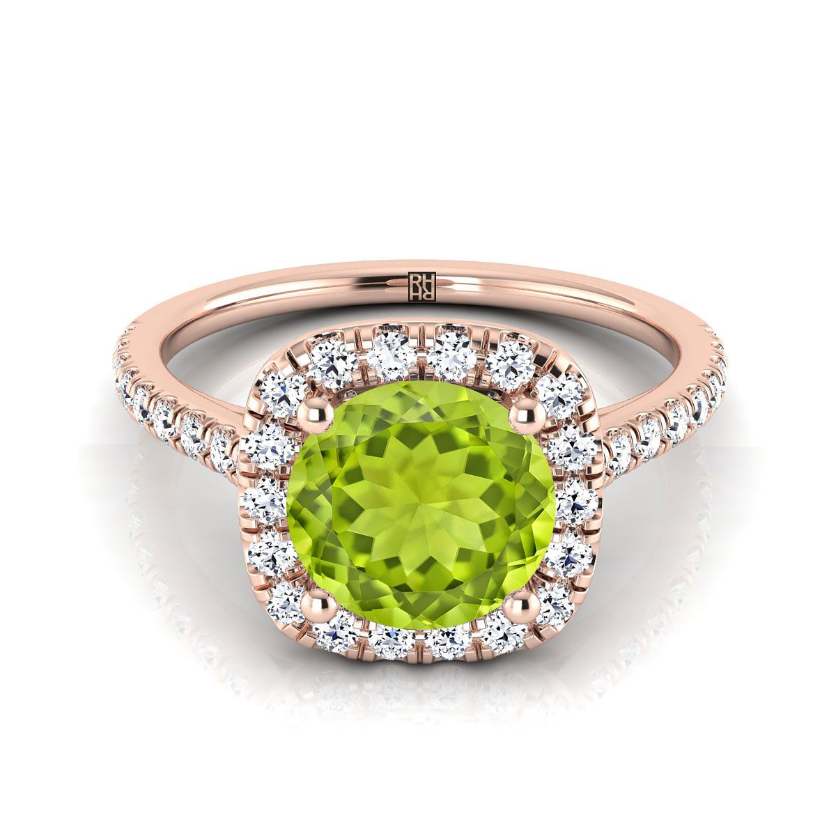 แหวนหมั้นเพชรประดับเพอริดอตทรงกลมเจียระไนแบบบริลเลียนต์ 14K ทองกุหลาบ พร้อมฮาโลและเพฟเพชร - 1/3ctw
